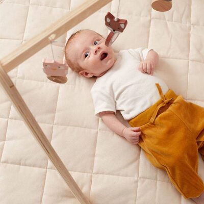 Mata dla dzieci w kolorze złamanej bieli z uroczego, grubego płótna bawełnianego to idealne miejsce na pierwsze ćwiczenia gimnastyczne. Możesz do niej dodać dowolne wybrane przez nas zabawki do ćwiczeń dla niemowląt. Kiedy dziecko zacznie siadać, pałąki maty można zdemontować, a potem używać jej jako miejsca do zabawy. Zabawki sprzedawane są osobno. Można prać w…