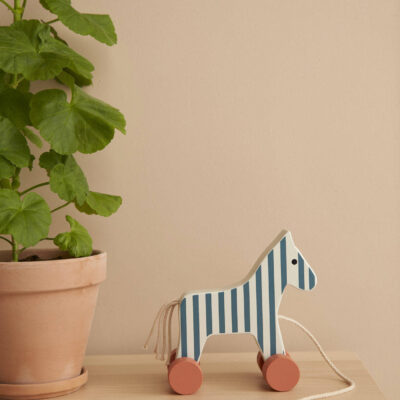 Drewniany konik do zabawy z kolekcji Carl Larsson ze sznurkiem o długości 60 cm.