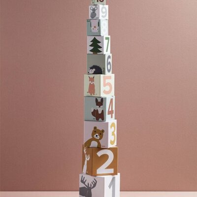 Kid’s Concept Piramida Wieża 1–10 AIDEN – kolorowe kartonowe pudełka z ilustracjami zwierząt i liczbami. Edukacyjna zabawka dla dzieci od 1 roku. Rozwój przez zabawę!