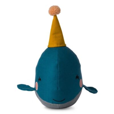 Przytulanka Pan Hipopotam Hilary w koronie na głowie.