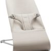 BABYBJORN – leżaczek BLISS 3D Jersey w kolorze Jasny Beż z ramą w kolorze jasny szary + Zabawka Googly Eyes Pastels
