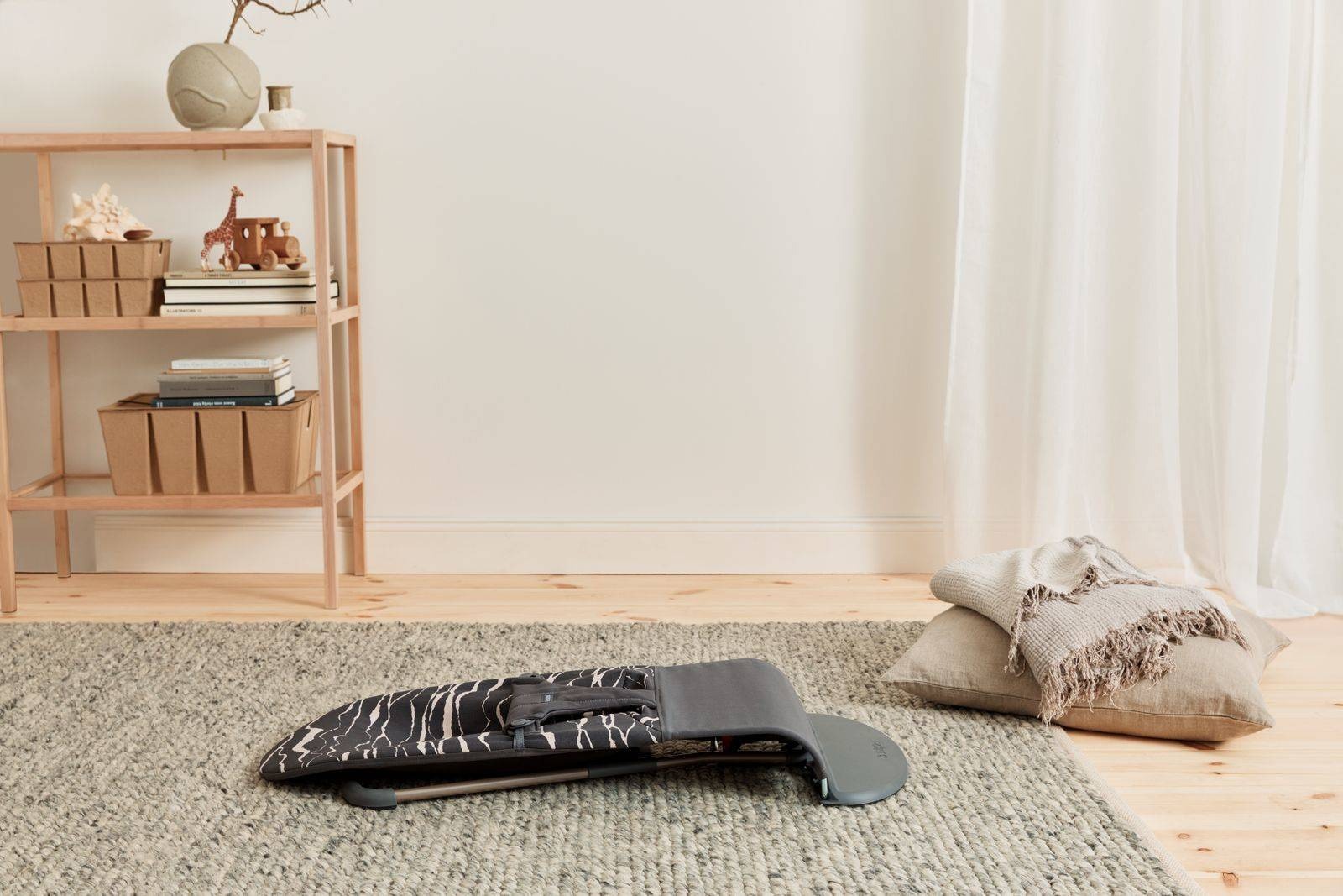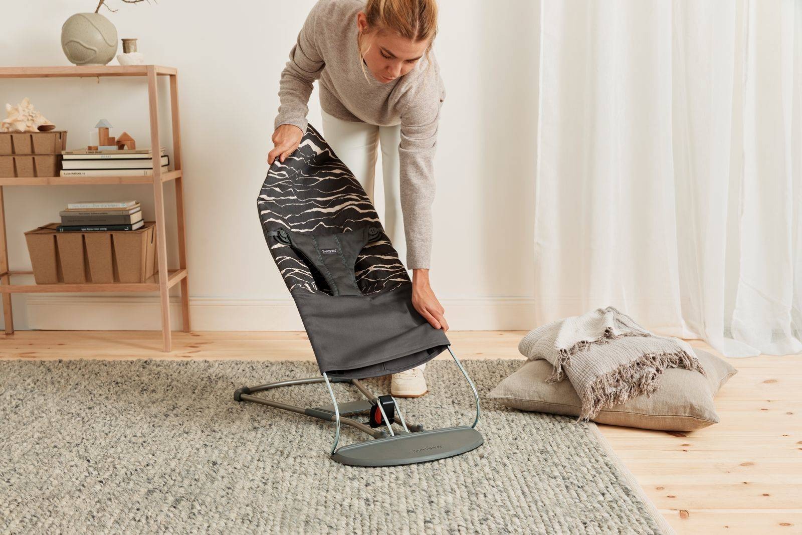 Leżaczek BabyBjorn zapewnia Twojemu dziecku przytulne miejsce do zabawy i odpoczynku. Porusza się dzięki naturalnym i spontanicznym ruchom dziecka. Dziecko bujając się rozwija zdolności motoryczne oraz równowagę w całkowicie naturalny dla siebie sposób. Młodsze dziecko można delikatnie i cicho kołysać ręką lub stopą.