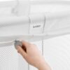 - Unikalna, przewiewna i bezpieczna konstrukcjaBezpieczna, zwiewna konstrukcja zapewnia spokojny sen dziecka. Przewiewne boki łóżeczka są miękką siatką, która pozwala dziecku swobodnie oddychać, nawet jeśli twarz dziecka znajdzie się blisko boków. Dodatkowo siateczka ułatwia opiekunowi obserwację dziecka. Nie trzeba kupować ochraniaczy bocznych, ponieważ kołyska jest wykonana w całości z miękkiego materiału i nie posiada żadnych elementów, które mogłyby zranić delikatną skórę dziecka. Dopasowany materac został zintegrowany z boczną siatką, tworząc unikalne rozwiązanie, które zapewnia dobrą cyrkulację powietrza i oznacza, że rodzic nigdy nie musi się martwić o utknięcie rąk lub nóg dziecka między szczebelkami. Pokrycie łóżeczka zapinane na zamek błyskawiczny może otwierać i zamykać tylko osoba dorosła za pomocą dołączonej zawieszki do zamka. Łóżeczko posiada stabilną konstrukcję, a ochronne podkładki antypoślizgowe zabezpieczają mebel przed przesuwaniem się i chronią podłogę.