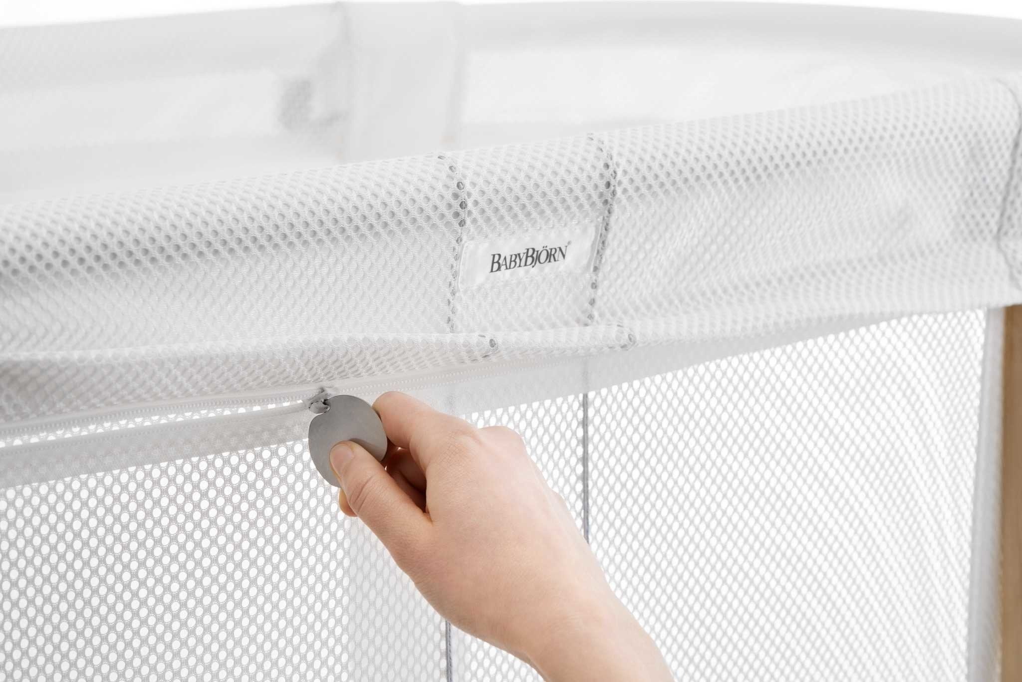 Przewiewne łóżeczko BABYBJÖRN Crib jest bezpiecznym i przytulnym miejscem do spania i odpoczynku dla Twojego dziecka. To idealne pierwsze łóżeczko, które posłuży maluchowi od urodzenia do około 2 roku życia. Boki łóżeczka wykonane są z miękkiej przewiewnej siatkowej tkaniny, która zapewnia idealną cyrkulację powietrza, a rodzic może z łatwością doglądać czy dziecko śpi spokojnie. Specjalnie dopasowany materac jest zintegrowany z bokami łóżeczka. Można dostosować go do dwóch pozycji wysokości, dzięki czemu z łóżeczka mogą korzystać zarówno noworodki jak i małe dzieci do 2 roku życia.