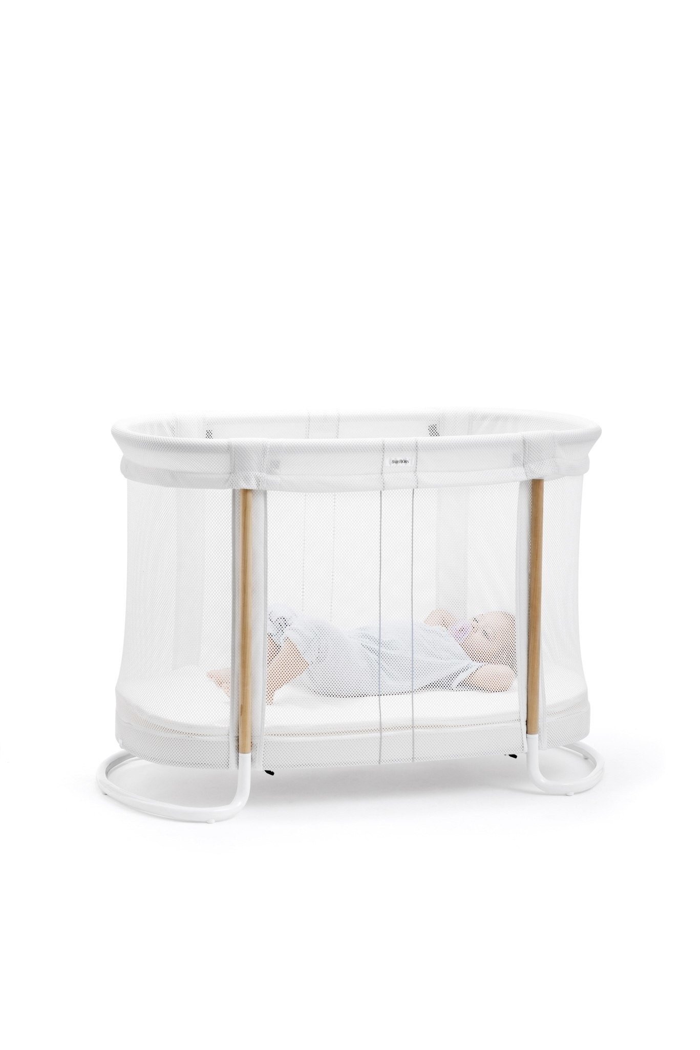 - Unikalna, przewiewna i bezpieczna konstrukcjaBezpieczna, zwiewna konstrukcja zapewnia spokojny sen dziecka. Przewiewne boki łóżeczka są miękką siatką, która pozwala dziecku swobodnie oddychać, nawet jeśli twarz dziecka znajdzie się blisko boków. Dodatkowo siateczka ułatwia opiekunowi obserwację dziecka. Nie trzeba kupować ochraniaczy bocznych, ponieważ kołyska jest wykonana w całości z miękkiego materiału i nie posiada żadnych elementów, które mogłyby zranić delikatną skórę dziecka. Dopasowany materac został zintegrowany z boczną siatką, tworząc unikalne rozwiązanie, które zapewnia dobrą cyrkulację powietrza i oznacza, że rodzic nigdy nie musi się martwić o utknięcie rąk lub nóg dziecka między szczebelkami. Pokrycie łóżeczka zapinane na zamek błyskawiczny może otwierać i zamykać tylko osoba dorosła za pomocą dołączonej zawieszki do zamka. Łóżeczko posiada stabilną konstrukcję, a ochronne podkładki antypoślizgowe zabezpieczają mebel przed przesuwaniem się i chronią podłogę.