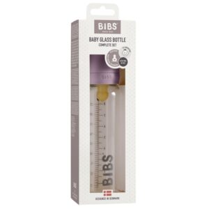 BIBS BUTELKA do karmienia SZKLANA ze smoczkiem antykolkowym z kauczuku, pojemność 225 ml, MAUVE