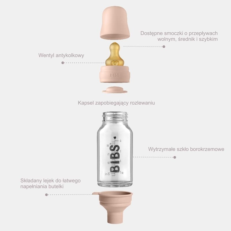 BIBS BABY GLASS BOTTLE MAUVE Antykolkowa Szklana Butelka do karmienia dla Noworodka 110 ml