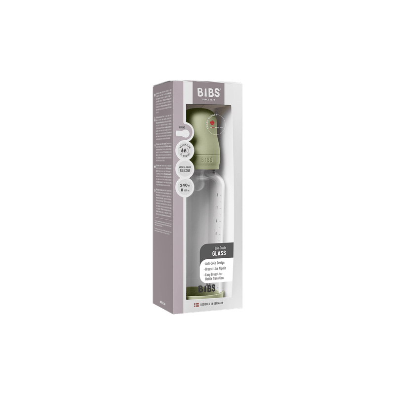BIBS BUTELKA SZKLANA ze smoczkiem antykolkowym z silikonu medycznego, pojemność 240 ml, SAGE