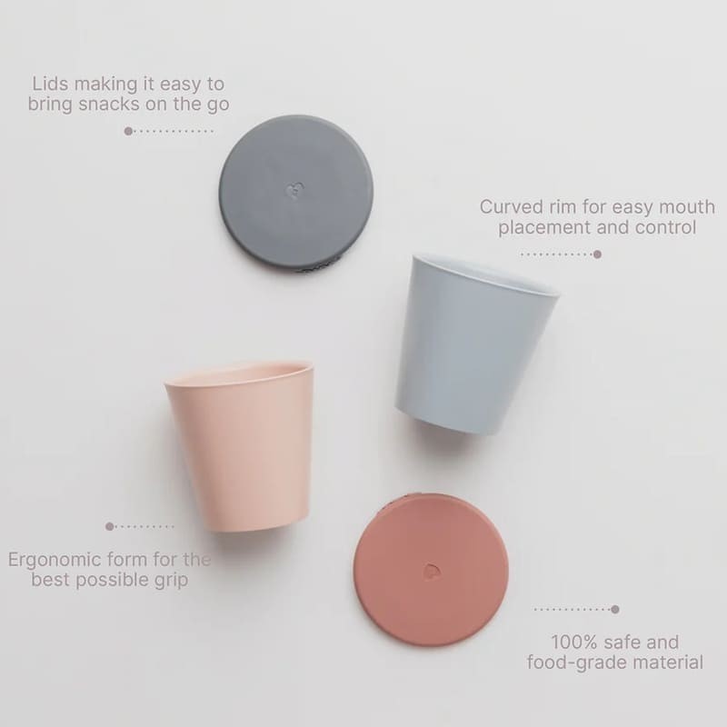 Kubeczki BIBS idealnie mieszczą się w dłoniach dziecka. Wykonane z trwałego tworzywa. Dzięki specjalnej pokrywce można je zamknąć i chronić zawartość przed wylaniem.