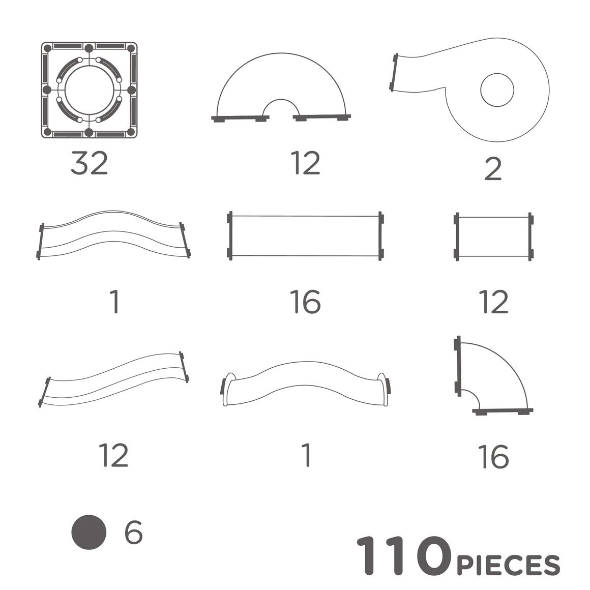 - 16 giętych rurek (1/4 okręgu)