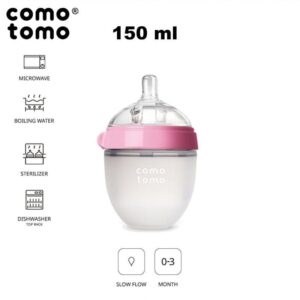 COMOTOMO – 2 antykolkowe butelki silikonowe MOM’S BREAST 150 ml Pink NEWBORN