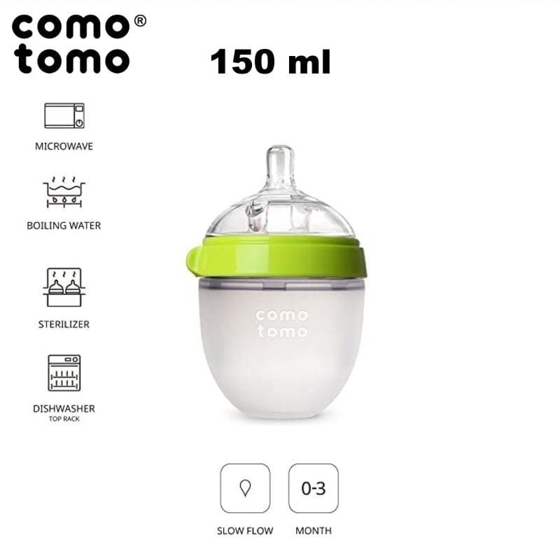 COMOTOMO - antykolkowa butelka silikonowa MOM'S BREAST 150 ml Green NEWBORN