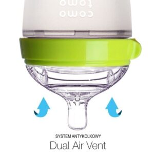 Kolka jest niemiłym i stresującym doświadczeniem tak dla Maluszka jak i dla całej rodziny. Antykolkowe smoczki do butelek MOM’S BREAST COMOTOMO posiadają dwa otwory wentylujące, aby zapewnić idealne wyrównywanie ciśnienia w butelce podczas karmienia, zapobiegając stopowanie pokarmu wewnątrz poprzez zassanie. Oznacza to, że Maluch pije tylko mleko i nie połyka powietrze. Odpowiednie ciśnienie w butelce regulowane przez opatentowany system DUAL AIR VENT pomaga zapobiegać niepożądanej kolce, ulewaniu,odbijaniu oraz gazom w brzuszku. Dodatkowo autorskie smoczki antykolkowe COMOTOMO nie posiadają żadnych zbędnych elementów,więc ich czyszczenie jest bardzo proste!