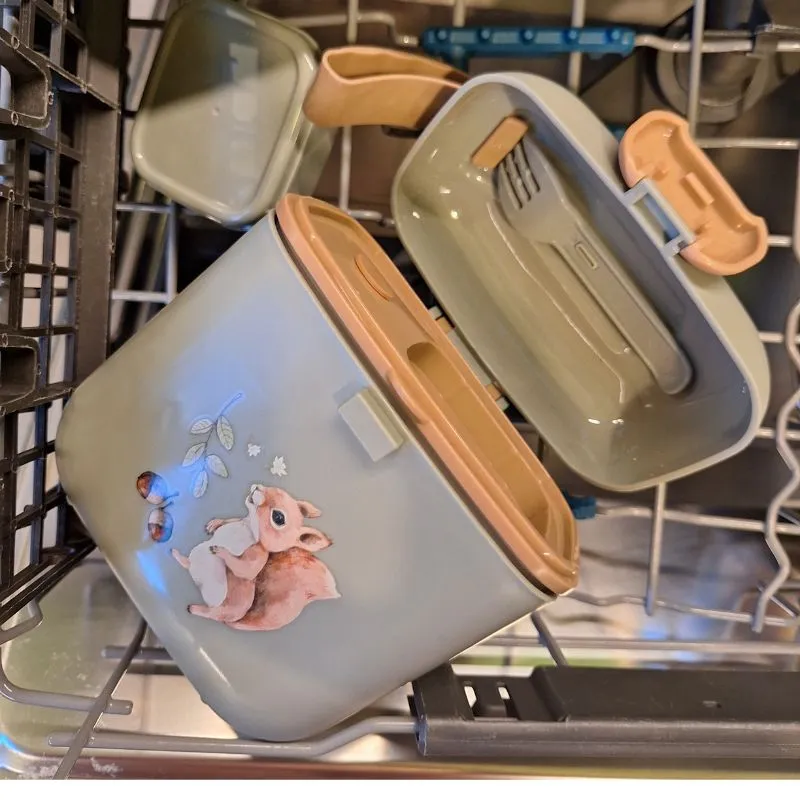 Pojemnik na drugie śniadanie, który doskonale sprawdzi się w przedszkolnej torbie. Dzięki kilku przegródkom kanapki, owoce a także przekąski pozostają świeże i estetycznie oddzielone.