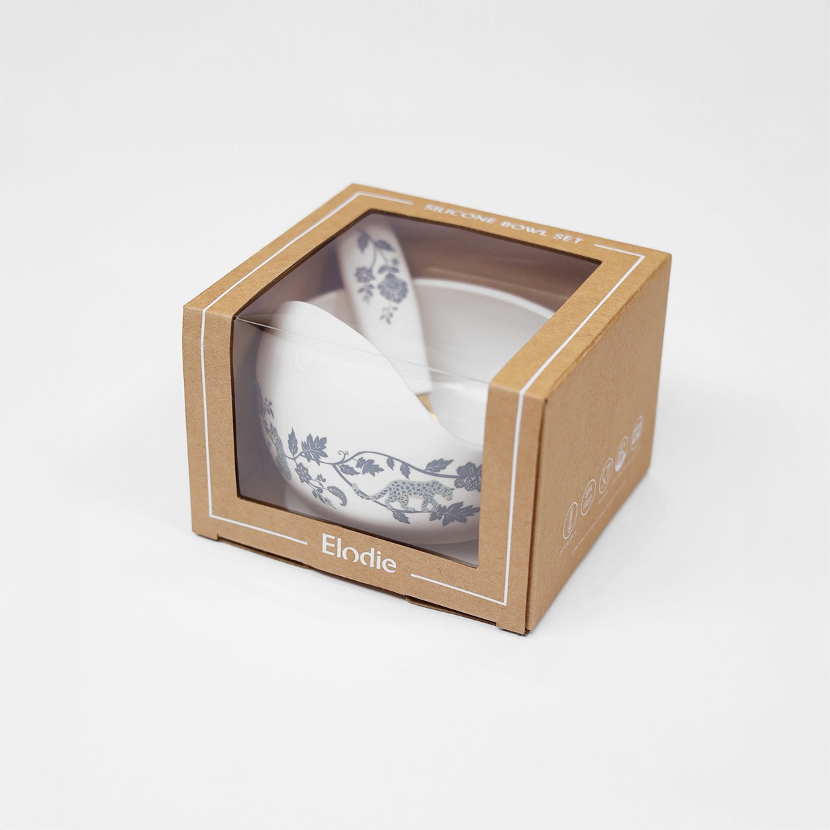 Elodie Details – zestaw do karmienia silikonowy – miseczka i łyżeczka. Do pierwszych samodzielnie zjedzonych posiłków. Wygodna łyżeczka idealnie leży w dłoni dziecka .Miseczka silikonowa przylega do blatu, nie spada, dziecko jej nie zrzuci.