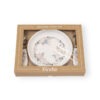 - Wymiary: Talerzyk : średnica: 17 cm, Sztućce: długość 14,5 cm