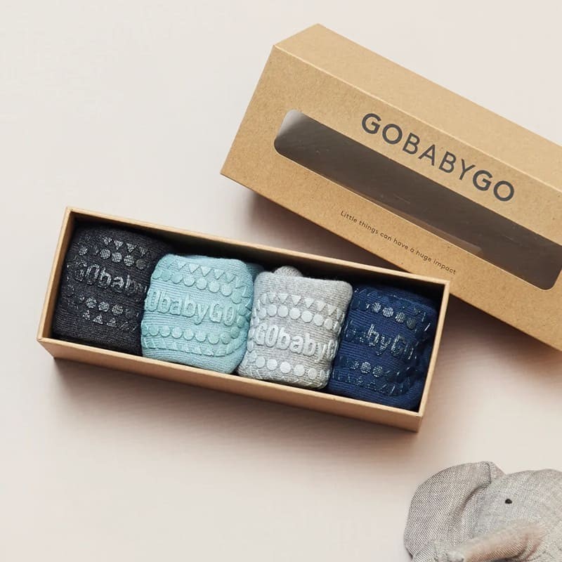 GoBabyGo antypoślizgowe skarpetki do nauki chodzenia 6 m+ zestaw 4 par