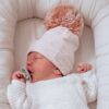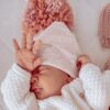 Hi Little One czapka z chustą komplet ALPACA BOHO Dark Pink S Pom Pom