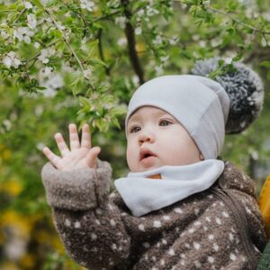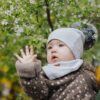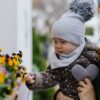 Hi Little One czapka z chustą komplet ALPACA BOHO Grey S Pom Pom