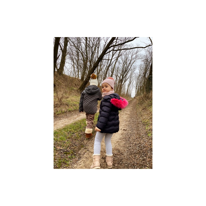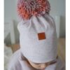 Hi Little One czapka zimowa niemowlęca ALPACA BOHO Dark Pink M Pom Pom