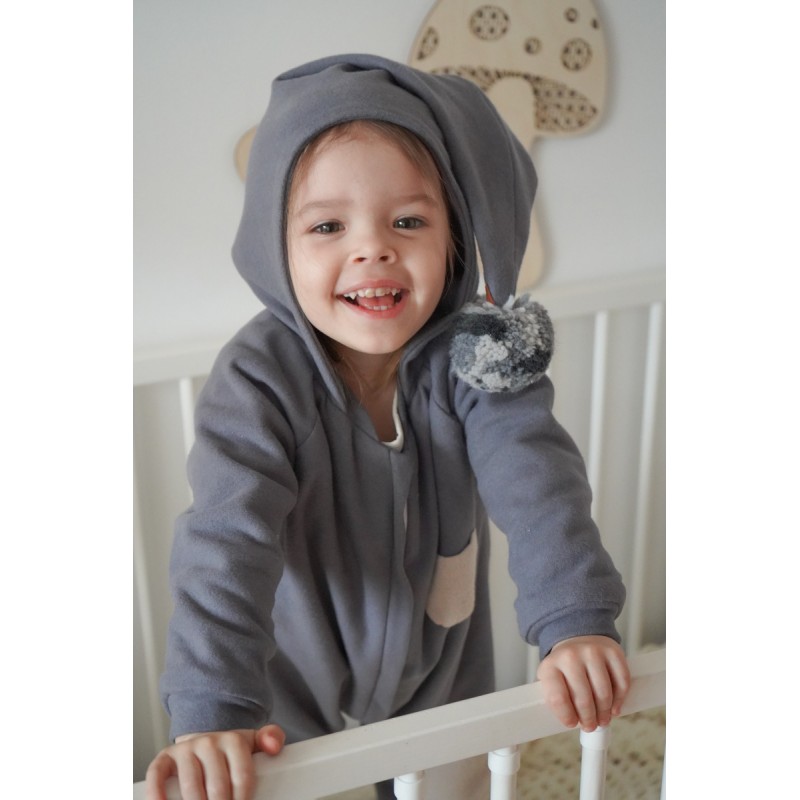 Bawełniany kombinezon całoroczny z kapturkiem zakończonym wesołym pomponikiem w stylu BOHO dla Najmłodszych zasuwany na bezpieczny suwak.