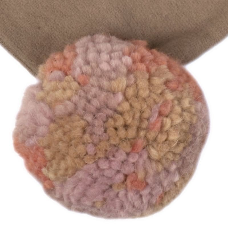 Cechą wyróżniającą ten komin/bandankę jest ręcznie wykonany pompon z naturalnego runa Alpaki i Owcy, który można wymieniać według upodobania – wybierz swój ulubiony zestaw kolorów i zmieniaj styl bandany w kilka sekund!