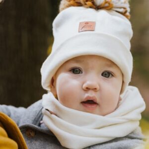 Hi Little One szalik golf zimowy niemowlęcy BOHO Ivory M Pom Pom