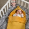 Śpiworek Basic Knit przyjemnie otula Niemowlę zatrzymując ciepło wokół Maluszka.