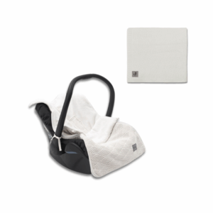 Jollein ciepły śpiworek do wózka i fotelika + kocyk do wózka fotelika i kołyski tkany RIVER KNIT Cream White – ZESTAW