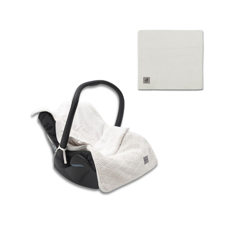 Jollein ciepły śpiworek do wózka i fotelika + kocyk do wózka fotelika i kołyski tkany RIVER KNIT Cream White - ZESTAW