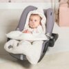 Dzięki uniwersalnym otworom na pasy, śpiworek pasuje do większości wózków a także fotelików z 3- i 5-punktowymi pasami bezpieczeństwa. To idealne rozwiązanie na jesień i zimę – zarówno na spacer, jak i do samochodu.
