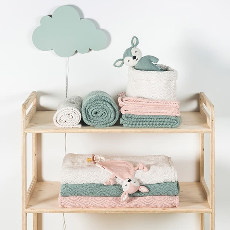 Kocyk Jollein to niezastąpiony element każdej wyprawki. Uszyty z wysokiej jakości bawełny z certyfikatem OEKO-TEX 100 z domieszką akrylu, jest przyjemny w dotyku a także w pełni bezpieczny dla wrażliwej skóry noworodka.