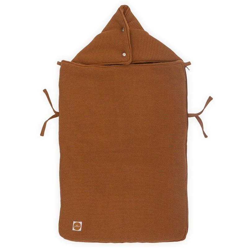 Jollein ciepły śpiworek do wózka i fotelika + kocyk do wózka fotelika i kołyski tkany BASIC KNIT Caramel – ZESTAW