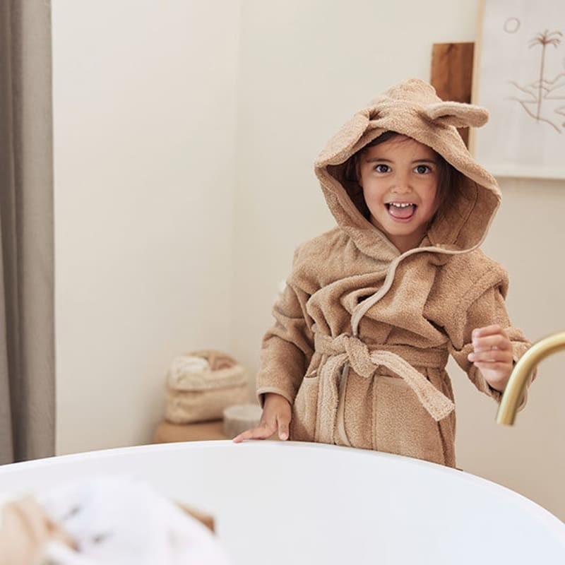 Szlafrok dziecięcy Jollein dla dzieci został zaprojektowany z myślą o komforcie a także funkcjonalności. Praktyczny kapturek chroni główkę dziecka przed wychłodzeniem, a prosty krój ułatwia szybkie owinięcie malucha zaraz po kąpieli. To idealne rozwiązanie na codzienne rytuały pielęgnacyjne.