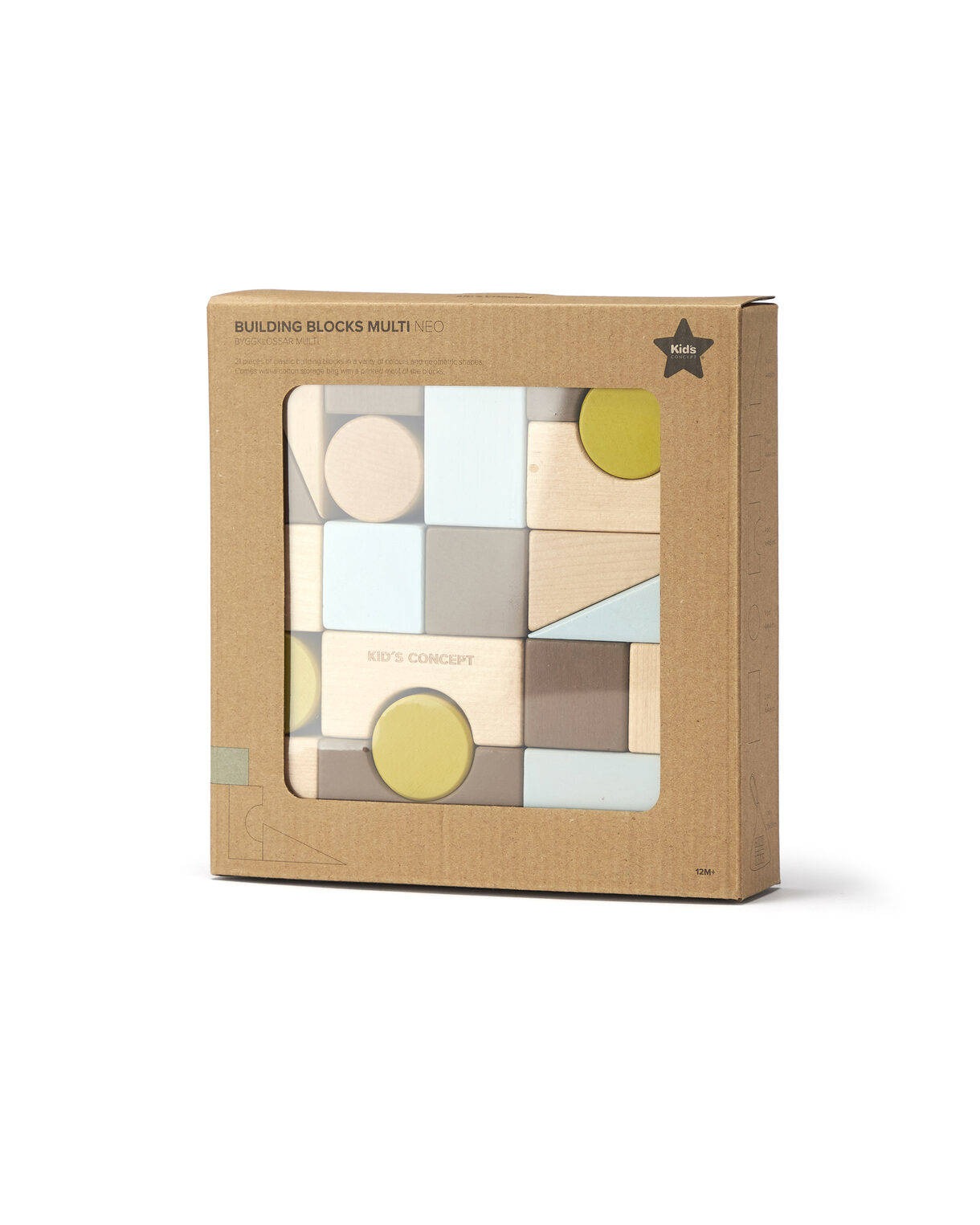 Klasyczne klocki NEO w różnych kolorach i geometrycznych kształtach.