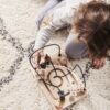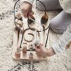 Drewniana ramka z koralikami pomoże doskonalić koordynację wzrokowo-ruchową małych dzieci.