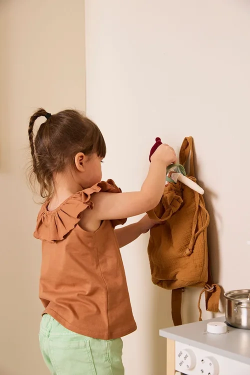 Ubranko lalki można zdjąć i założyć. Lalka może korzystać z łóżeczek i wózków dla lalek Kid’s Concept. Można także uszyć własne ubrania dla Nilsa i Ingrid – lalek Kid’s Concept. Zeskanuj kod QR znajdujący się na pudełku, aby pobrać wzory odzieży.