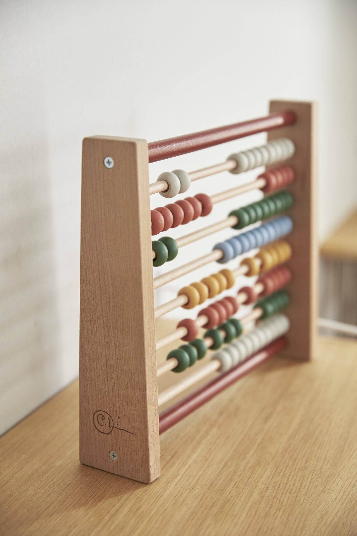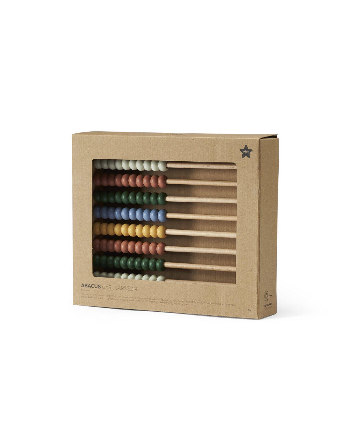 Drewniane zabawki z kolekcji Carla Larssona firmy Kid’s Concept są dziś równie atrakcyjne, jak na początku XIX wieku. Drewniane liczydło ma osiem rzędów, w każdym jest dziesięć koralików. Kolorystyka tej popularnej zabawki nawiązuje do barw użytych w domu słynnego szwedzkiego projektanta Carla Larssona. Z boku, na ramce wypalono logo CL, a całość wykonana jest z drewna z certyfikatem FSC.