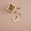 Kiedy dziecku uda się umieścić wszystkie klocki w pudełku, otwórz przesuwaną pokrywę, obróć pudełko do góry nogami i opróżnij je. Teraz możecie zacząć od nowa, dobra zabawa nieprędko się skończy.