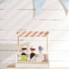 - Materiał: Stojak na lody: sklejka lipowa. Wafelek, patyk: buk. Lody: schima. Tkanina: bawełna.