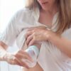 Nałóż laktator na butelkę, przyłóż do piersi i ściągnij mleko.
