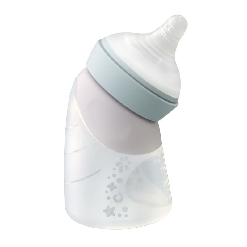 Innowacyjna antykolkowa butelka silikonowa do karmienia niemowląt z nakładanym laktatorem do odciągania mleka z piersi.