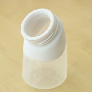 Butelka posiada 3 oznaczenia wolumetryczne, które ułatwiają odczytanie ilości pozostałego mleka bez otwierania butelki.
