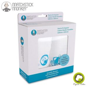 Matchstick Monkey® Organic Cotton Swaddle Blue to zestaw dwóch organicznych otulaczy stworzonych z najczystszej, organicznej BIO bawełny, zaprojektowanych z myślą o najbardziej wrażliwej skórze noworodków i wcześniaków.