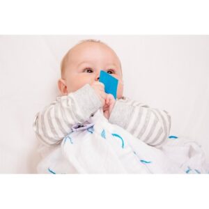 Matchstick Monkey® Organic Cotton Swaddle Blue – Organiczne otulacze z BIO bawełny z silikonową wstawką gryzakową | 2 szt. | 120×120 cm