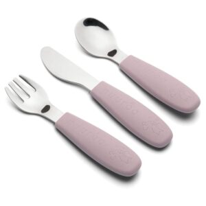 Przepiękny zestaw sztućców wykonany z bezpiecznej dla Dzieci stali szlachetnej utrzymany w pastelowej tonacji skandynawskich kolorów.