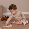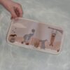 Książeczka do kąpieli zawiera cztery kolorowe strony z ciekawą historią, która przyciąga uwagę dziecka. Stonowane kolory a także proste ilustracje pomagają maluchowi skoncentrować się na fabule, rozwijając jednocześnie zdolności poznawcze i językowe. Jest to zabawka, która wspiera rozwój zmysłów a także wyobraźni, jednocześnie wprowadzając dziecko w świat edukacyjnej, wodnej zabawy.