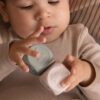 Rozwój motoryki i zmysłów – Klocki sensoryczne Nuuroo to zabawka, która wspiera rozwój dziecka już od 6. miesiąca życia. Dzięki możliwości układania piramidki, maluch rozwija motorykę ręki i koordynację wzrokowo-ruchową. Kostkami można również rzucać, grać w memo, a później wykorzystać je do zabawy w tworzenie „misiowych pieczątek”.