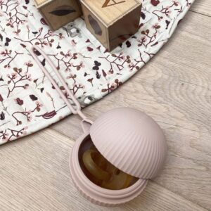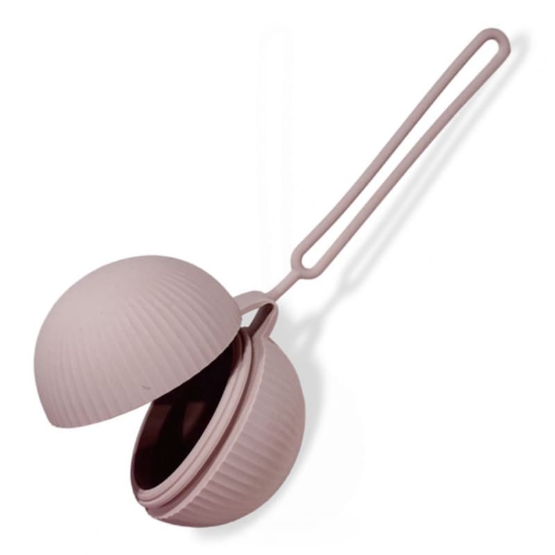 Miękkie i bardzo funkcjonalne hermetyczne etui na smoczki w kształcie kuli wykonane z silikonu.