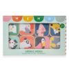 Gra memo wykonana z drewna bukowego ze wspaniałymi malowanymi ilustrowanymi zwierzętami.